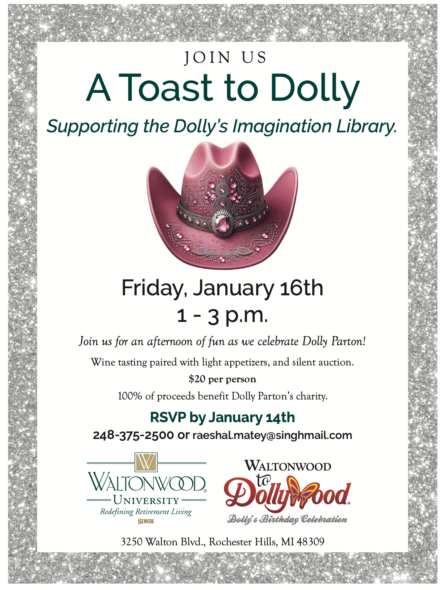 Early in January, Waldonwood, a retirement community in Rochester, hosted 30 guests to raise funds for our Dolly Parton Imagine Library. They invited their residents, prospects, professionals and other local community members to attend. The attendees were greeted by a life- size Dolly cut out and a poster explaining that for a small donation, they could provide a book a year to a preschooler in our zip codes. The community staff was on hand and very helpful. Sommelier Jean-Jacques Fertal guided attendees through a curated selection of wines, perfectly complemented by lite bites prepared by Chef Aaron Nash. Together the efforts resulted in the sponsorship of 57 preschoolers who will each receive a book a month for a year.