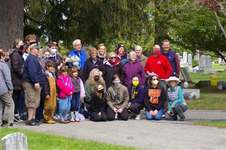 The Lakeview Cemetery Restoration Project provided the perfect opportunity for the Clarkston Rotary and its sponsored Clarkston High School Interact Club members to join forces on Saturday, May 8th in helping to clean and preserve gravestones. Over twenty members helped to scrape away years of moss and grime. Afterwards, everyone could take pride in their completed efforts and planned on returning for future scheduled activities.